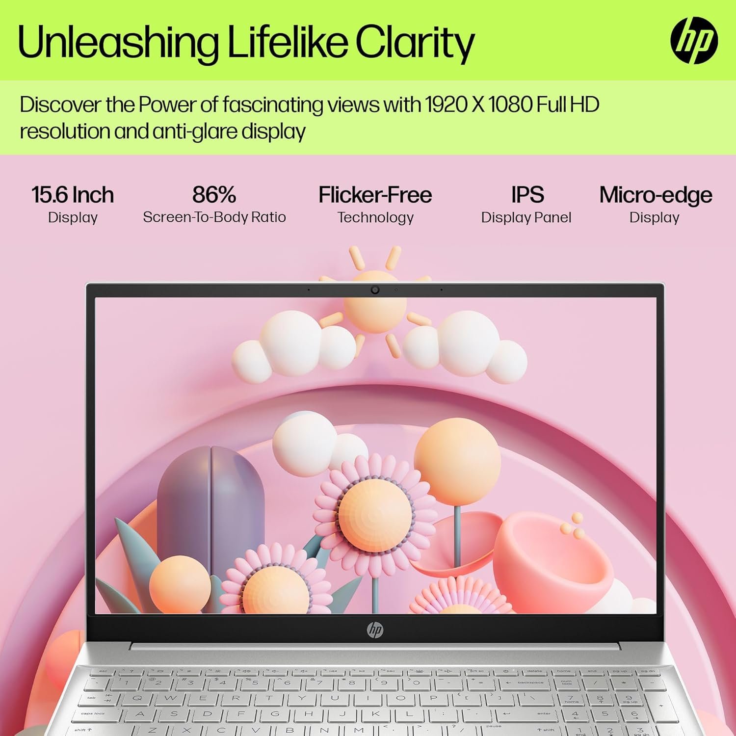 The 15.6-inch (39.6 cm) Full HD (1920 × 1080) display offers sharp, vibrant visuals with micro-edge bezels for a more immersive viewing experience. The anti-glare coating ensures comfortable use in bright environments, whether you’re indoors or on the go.